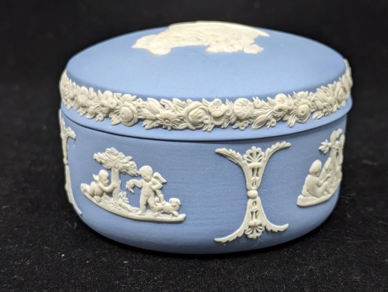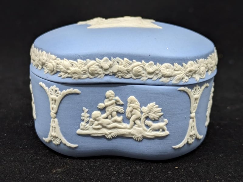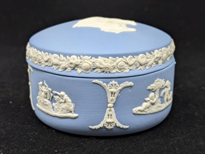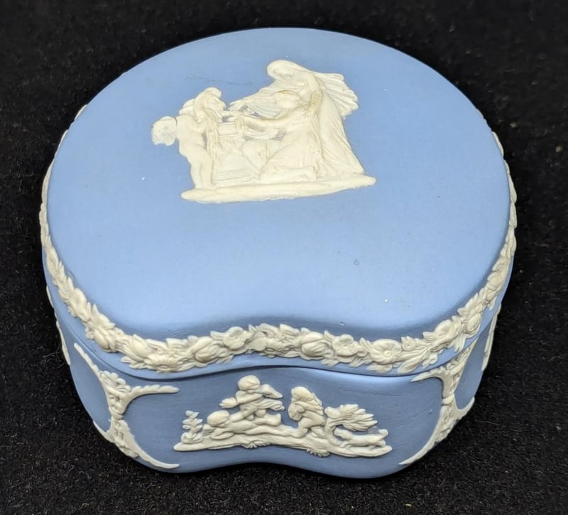 WEDGEWOOD TRINKET BOXBlue Exterior With White Imagery Around Exterior And On Lid, Size: 6cm H x 8cm W x 7cm587964+47