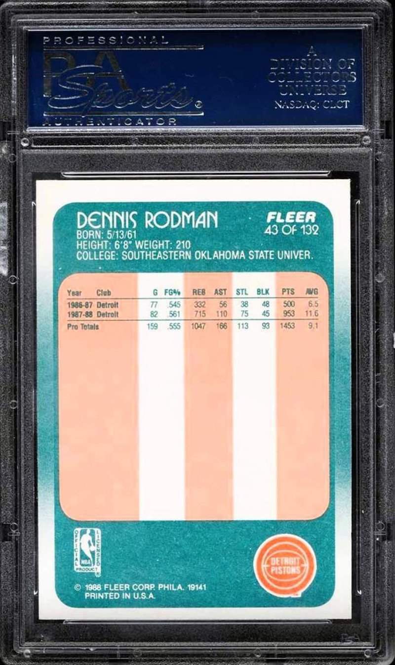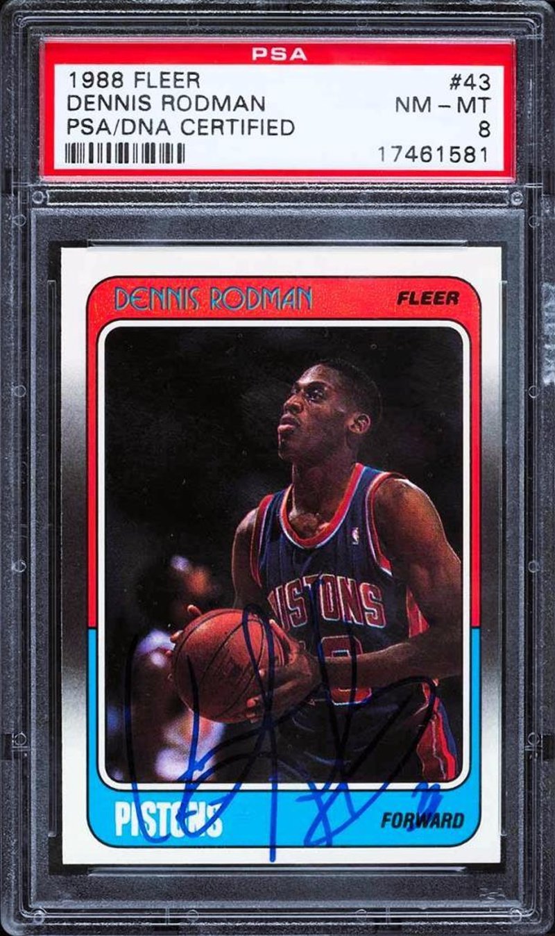 1989 FLEER BASKETBALL DENNIS RODMAN ROOKIE AUTO #43 PSA 8 NM-MTA 1988 Fleer Basketball Rookie Autograph Card Of Dennis Rodman, Card #43. Professionally Graded By Psa. This Rookie Autograph Combines Early-Career Significance With Certified Authenticity, Appealing To Collectors Of Nba History.Condition: Good - Refer To Images584600+5