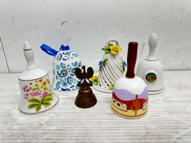 Bells, 1x box of assorted bells including, ceramic, floral and more