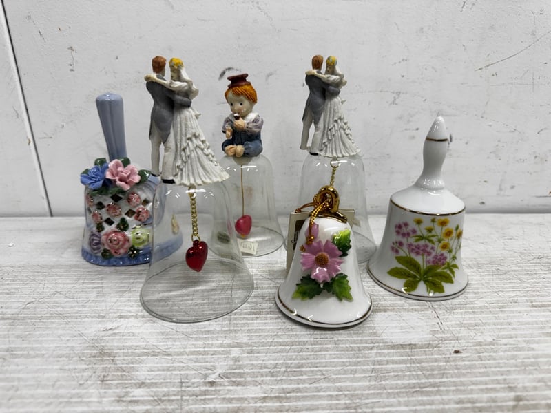 Bells, approx 77x of assorted bells including, Christmas, glass and more Sold as lot