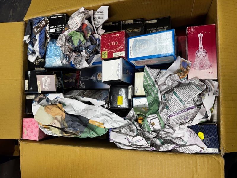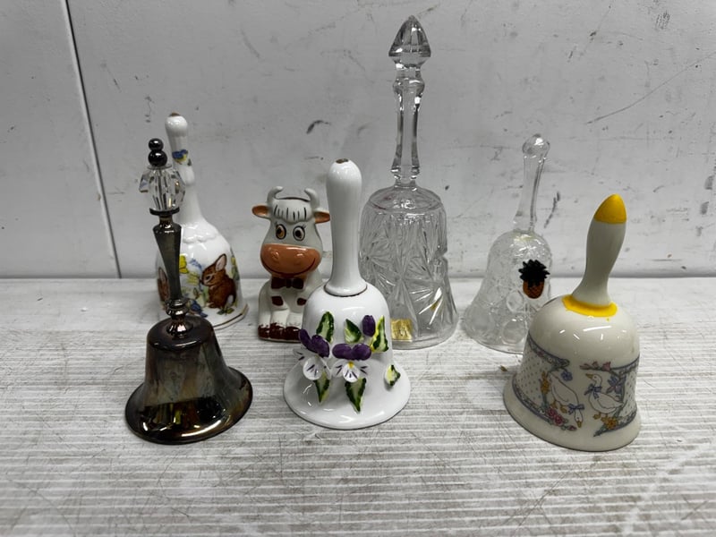 Bells, approx 63x assorted bells including, glass, ceramic, metal and more Sold as lot