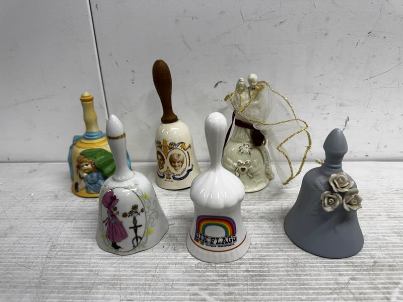 Bells, 1x box of assorted bells including ceramic, souvenir and more Sold as lot