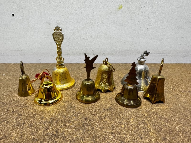 Bells, 1x box of assorted miniature bells including, holiday, brass and more