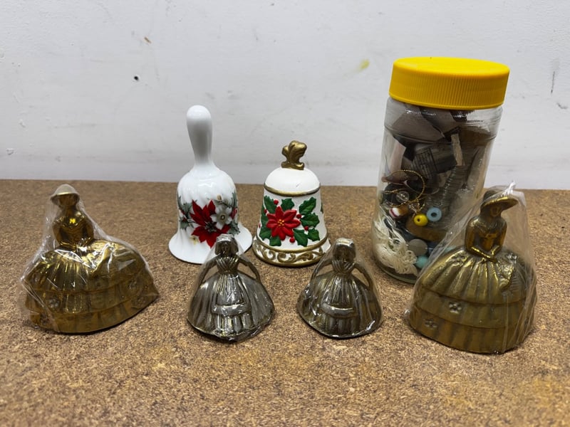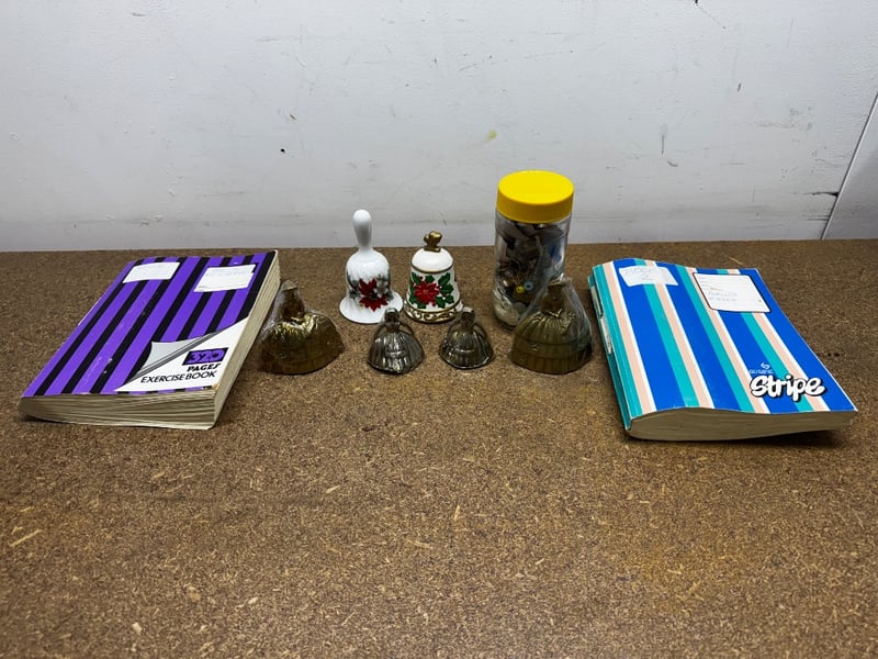 Bells, 1x box of assorted bells including information books, gear, holiday theme and more Sold as lot