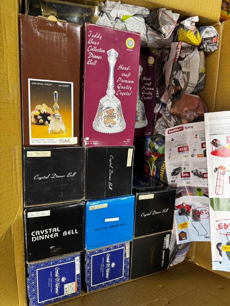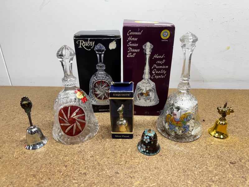 Bells, 1x box of assorted bells including, large bells in boxes, souvenir and more Sold as lot