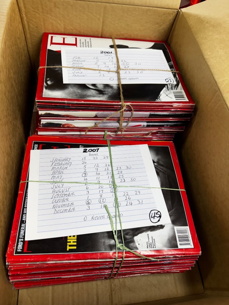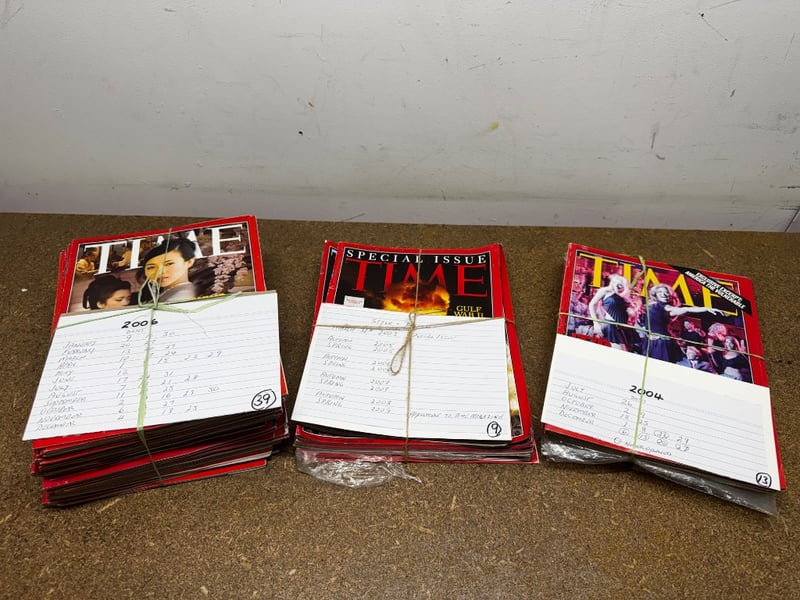 Magazines, assorted box of Time Magazines from years including, 2006, 2004 and more
