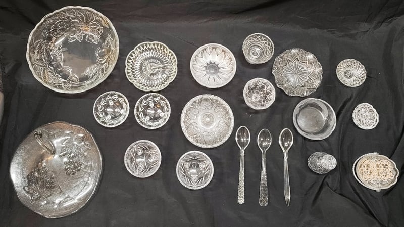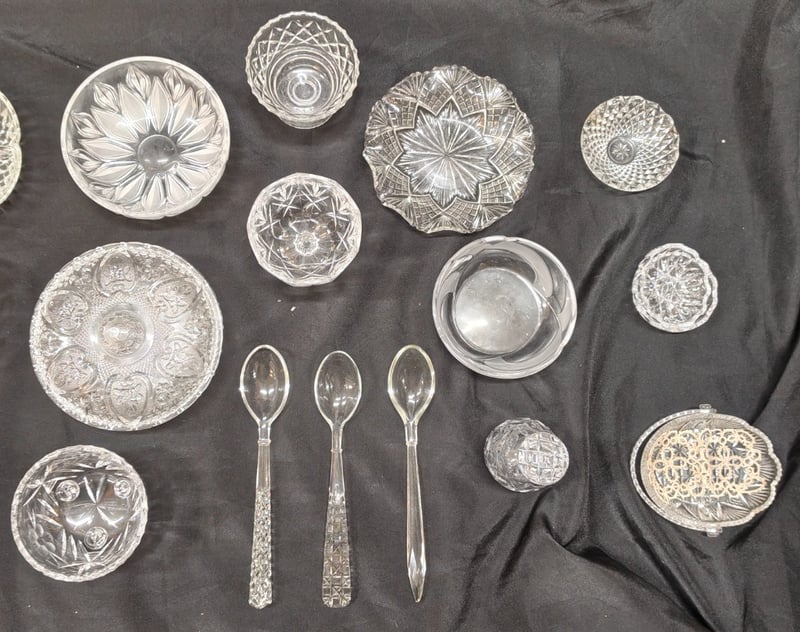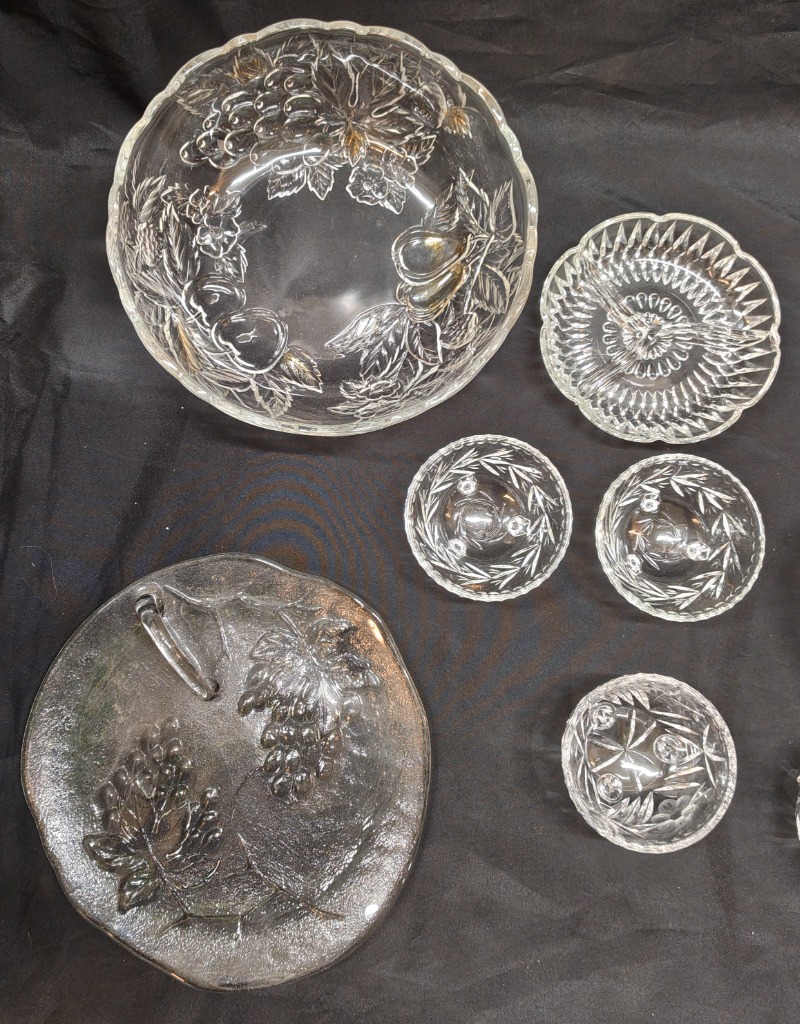 COLLECTION OF GLASSWARE, INCLUDING PLATES, BOWLS, JARS AND SPOONS